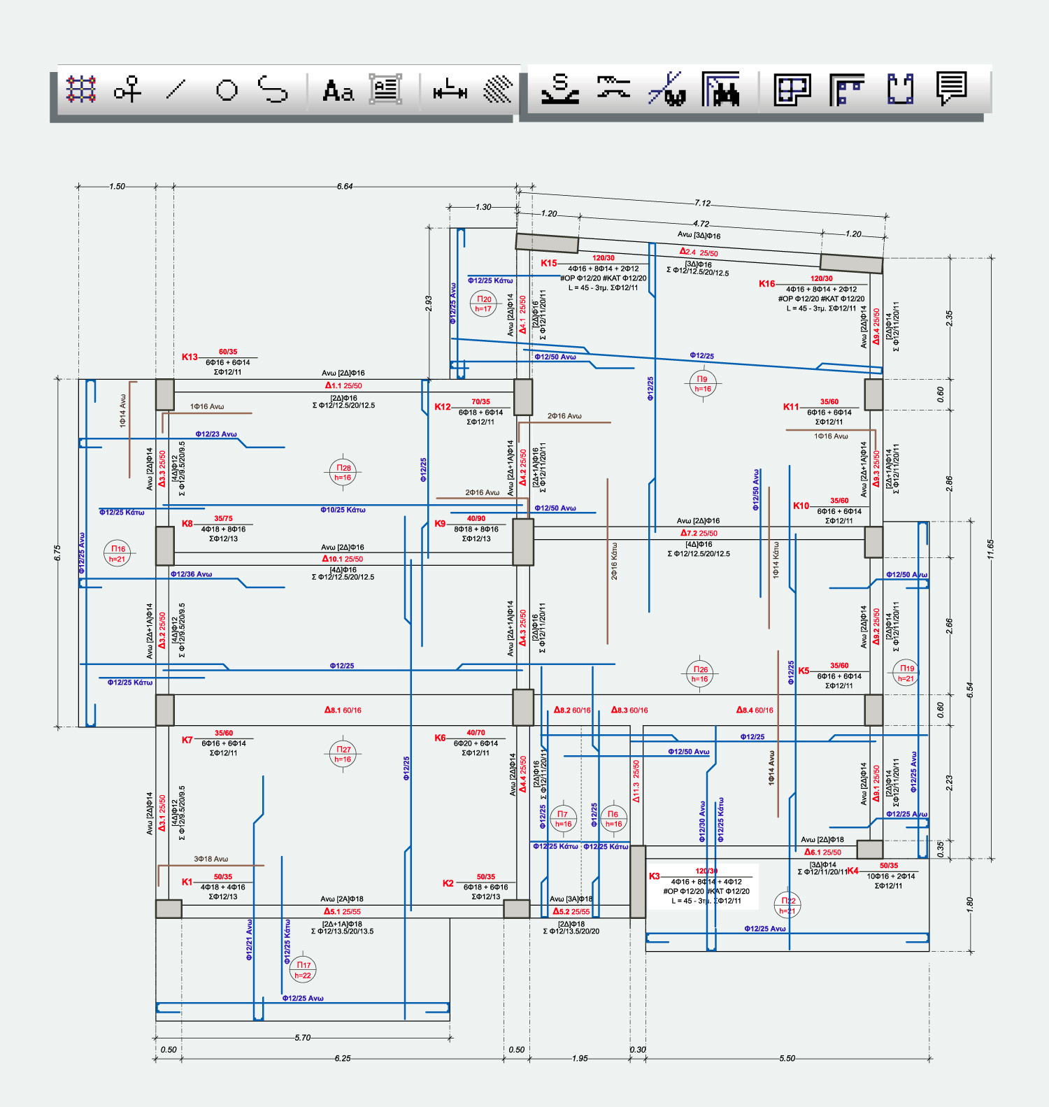 • τα αναπτύγματα οπλισμών δοκών,