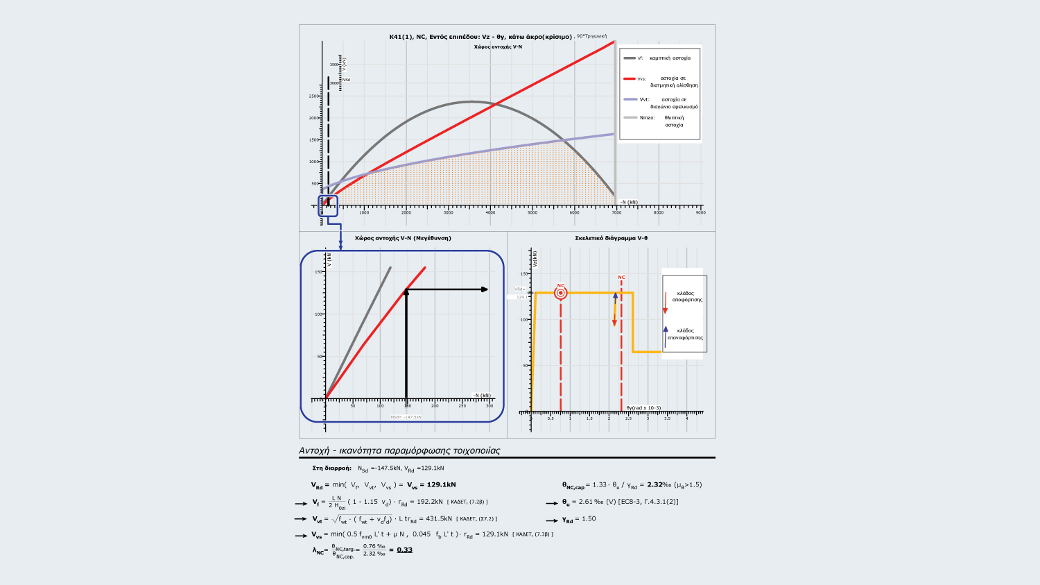 Τα αποτελέσματα των αναλύσεων τεκμηριώνονται τόσο γραφικά όσο και αναλυτικά στο τεύχος μελέτης, παραθέτοντας το αντίστοιχο τυπολόγιο του ΚΑΔΕΤ και του EC8-3.