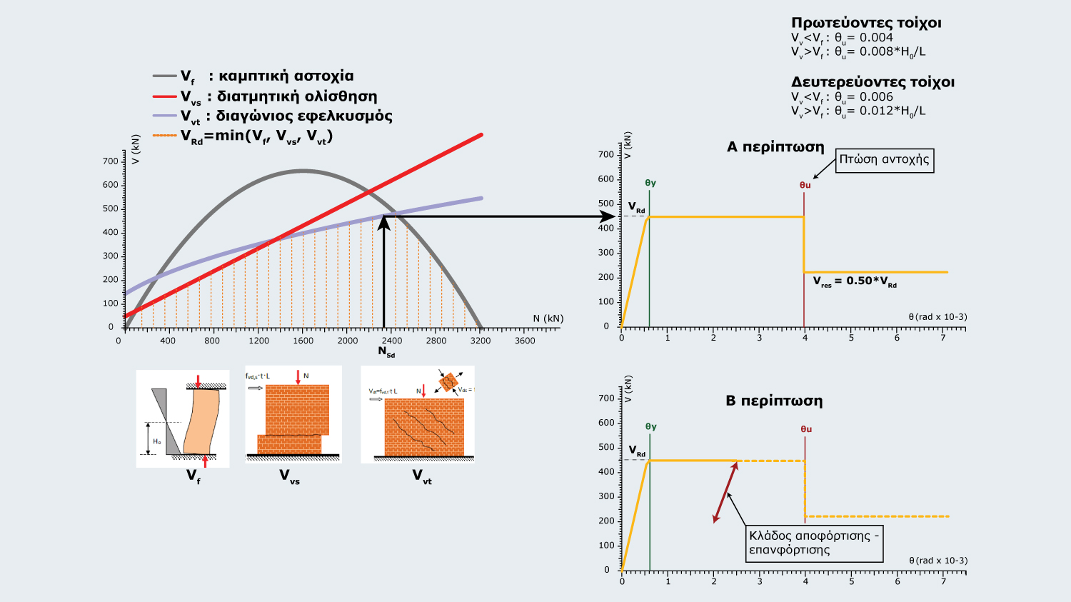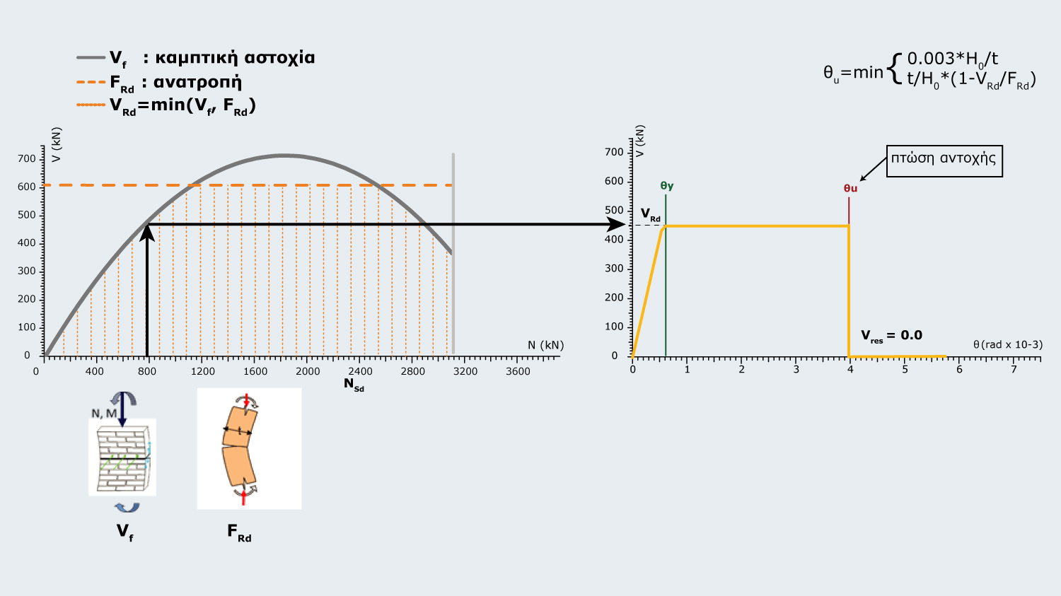 - προσομοιώνει την αστοχία της τοιχοποιίας με φθίνοντα κλάδο