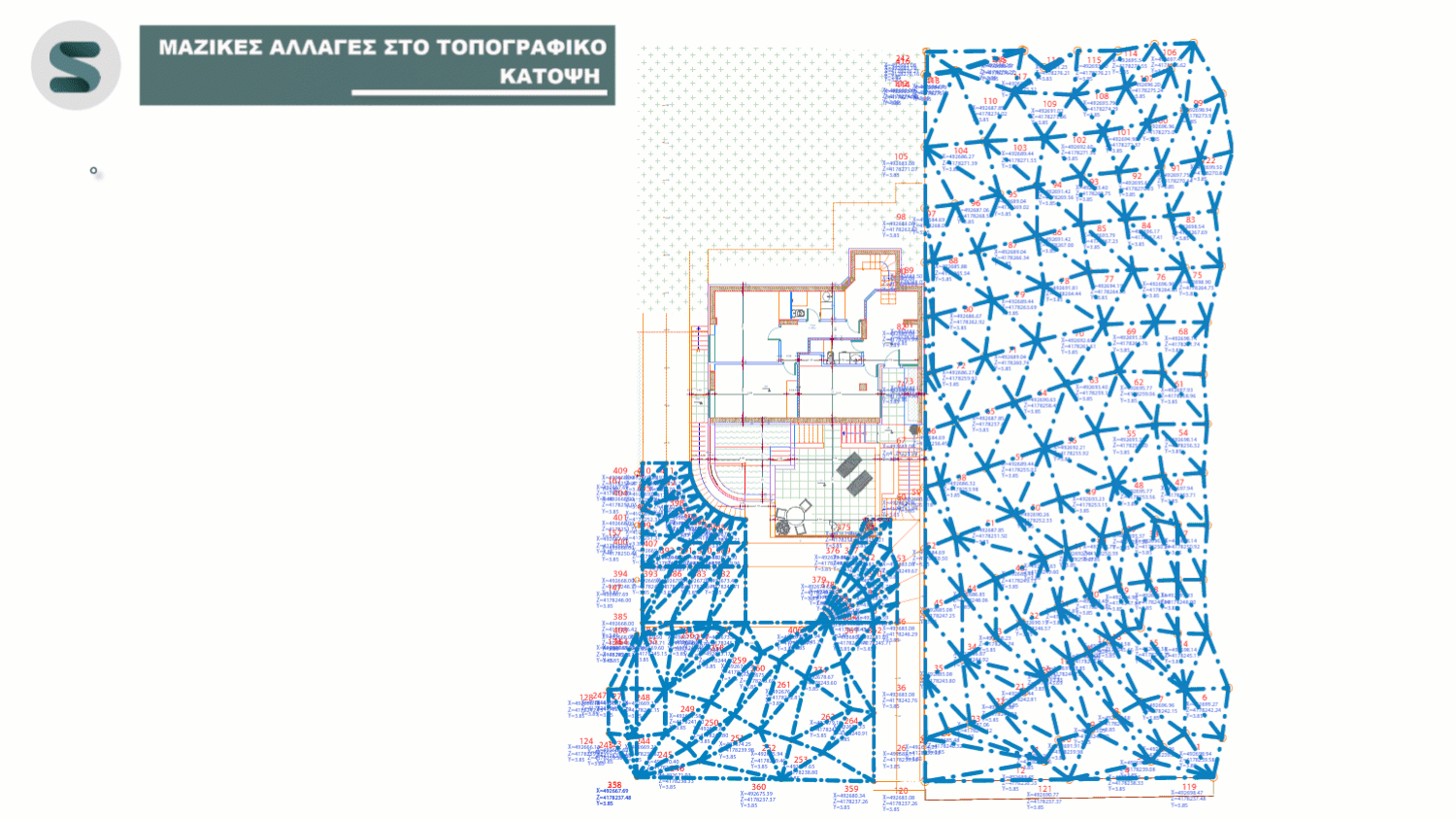 Μαζική επεξεργασία πολυγραμμών και σημείων τοπογραφικού στην κάτοψη.