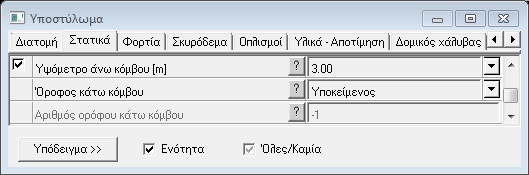 Καρτέλα «Στατικά» της οντότητας «Υποστύλωμα»
