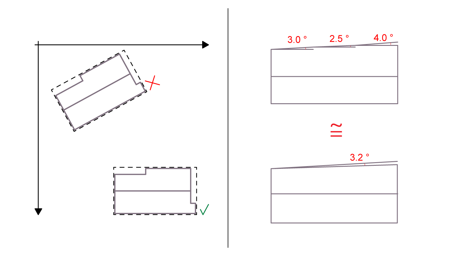 Για τον καθορισμό των ζωνών του ανέμου στη στέγη χρησιμοποιείται το περιγεγραμμένο ορθογώνιο σχήμα της κάτοψης. Οι διαστάσεις της κάτοψης είναι δυνατό να υπολογίζονται αυτόματα από το πρόγραμμα βάσει των συντεταγμένων των περιμετρικών κόμβων του μοντέλου.