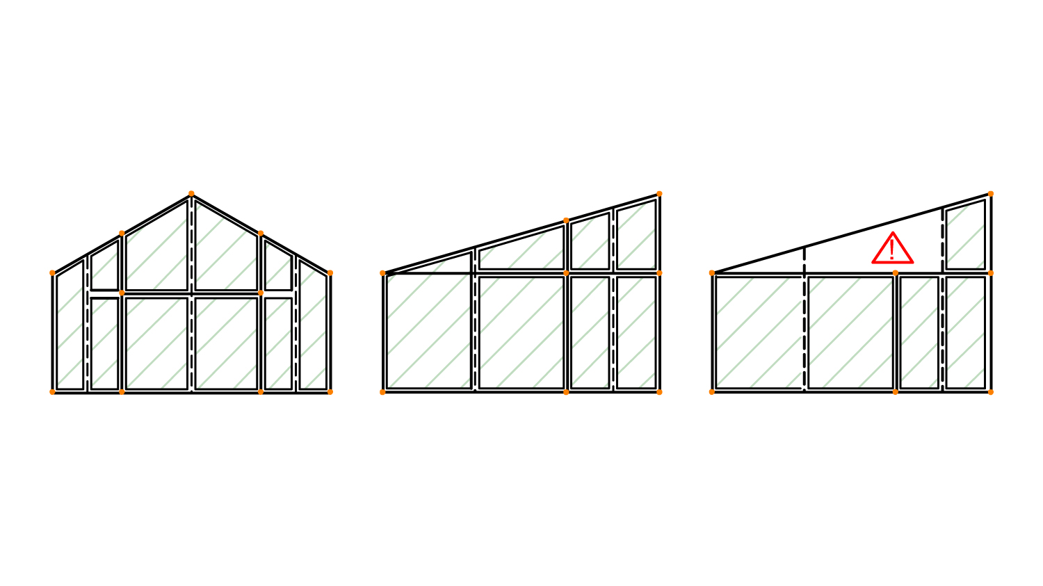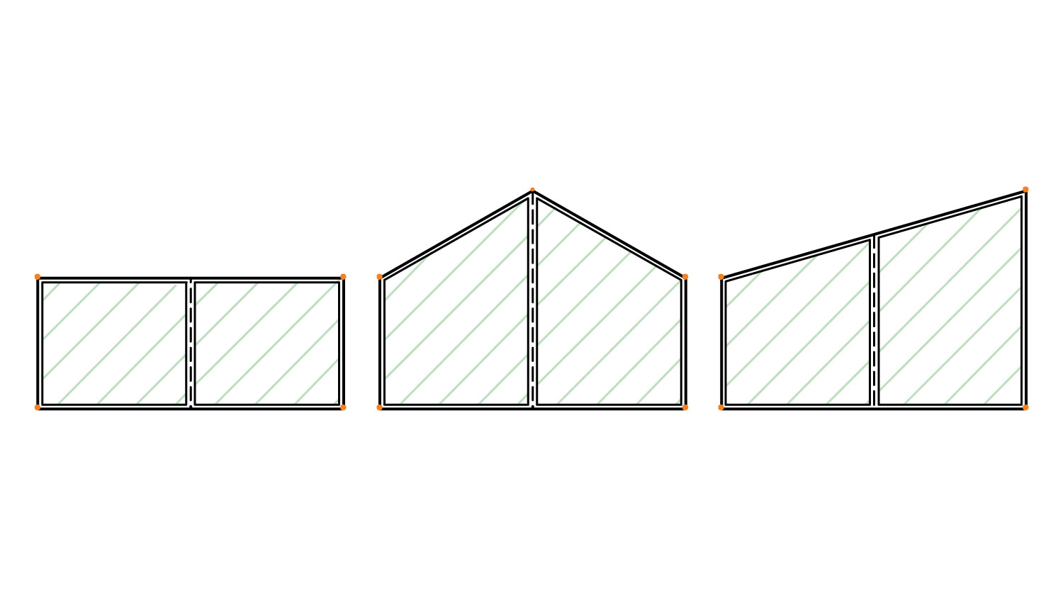 Κλειστά κτίρια (με τοίχους) με στέγες (οριζόντιες, μονόρριχτες ή δίρριχτες) και ισοκατανεμημένα ανοίγματα.