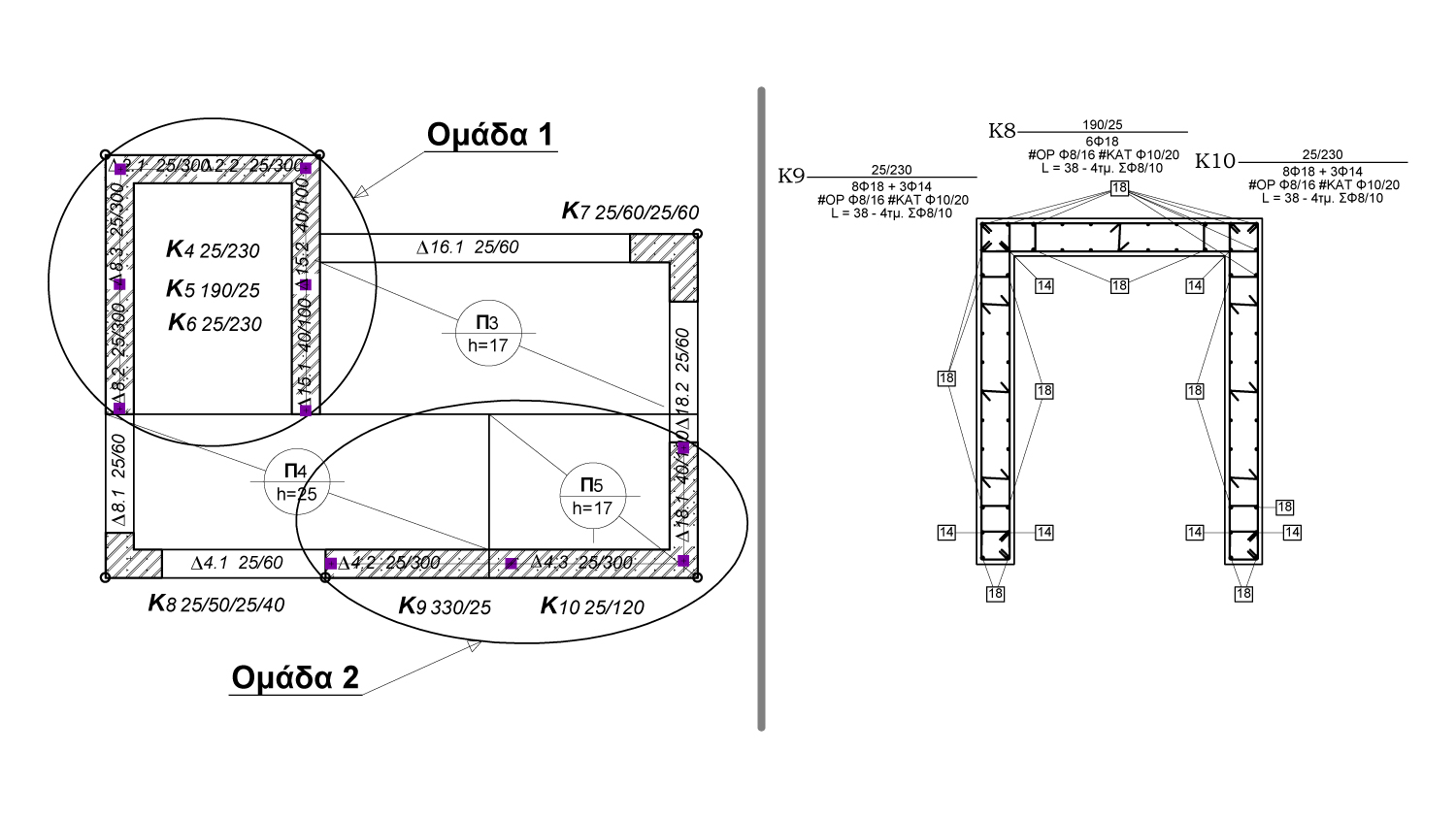 - Επιλογή του ονόματος ομάδας που θα δοθεί στα υποστυλώματα. Κάθε σύνθετη διατομή της κάτοψης θα έχει και ξεχωριστό αριθμό ομάδας. Π.χ. οι Κ4, Κ5, K6 αποτελούν την ομάδα 1 ενώ οι Κ9, Κ10 την ομάδα 2.
