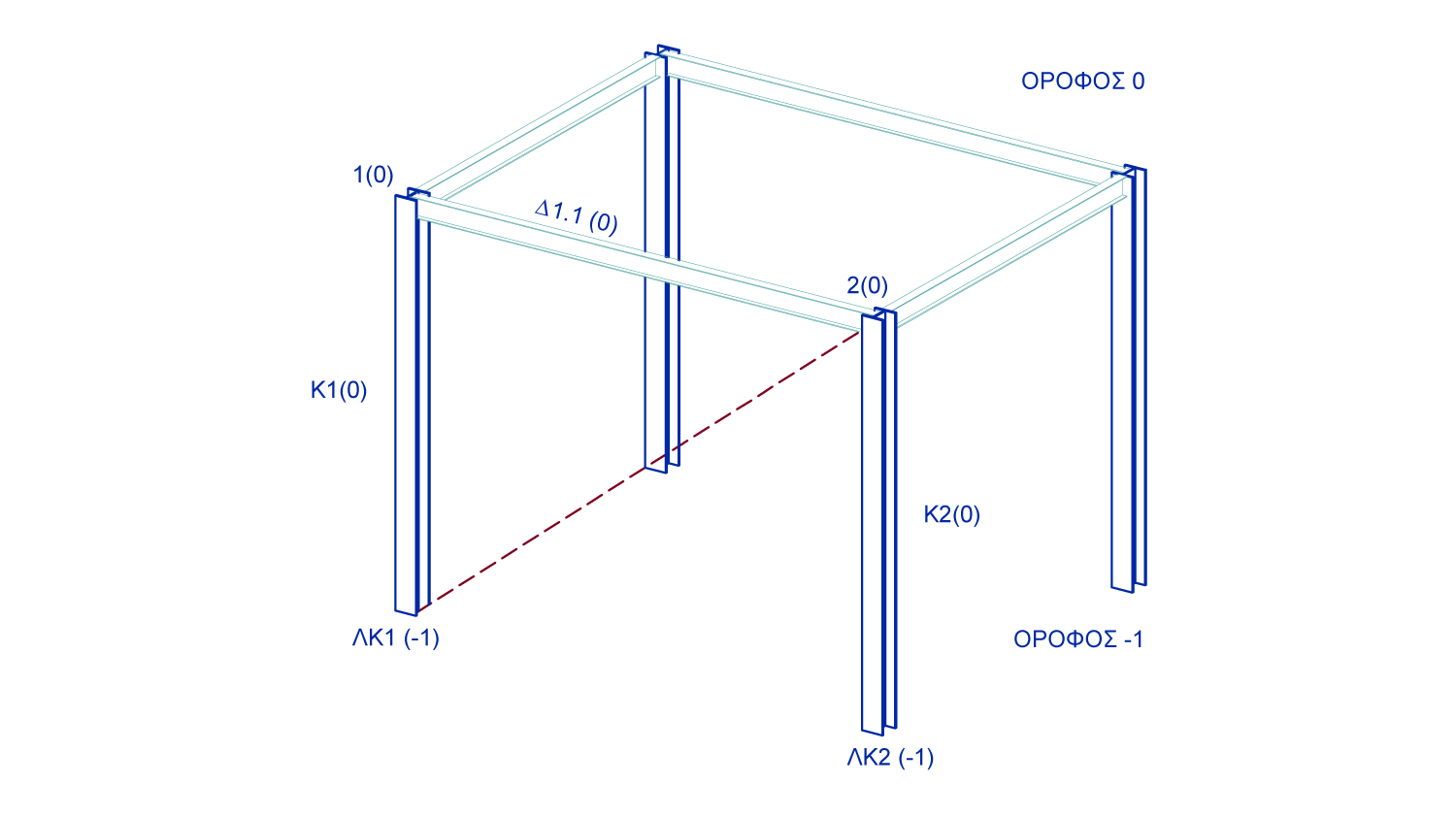 - Σημείο αρχής: δείξτε το κέντρο βάρους του υποστυλώματος Κ1 (0).