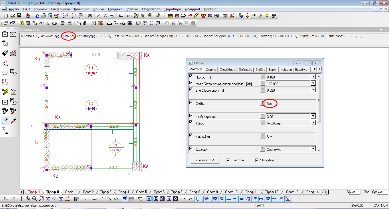 Κατά την εισαγωγή των πλακών της σκάλας Π1 και Π2 θέστε «Ναι» στην παράμετρο «Πλάκα > Διατομή > Σκάλα».