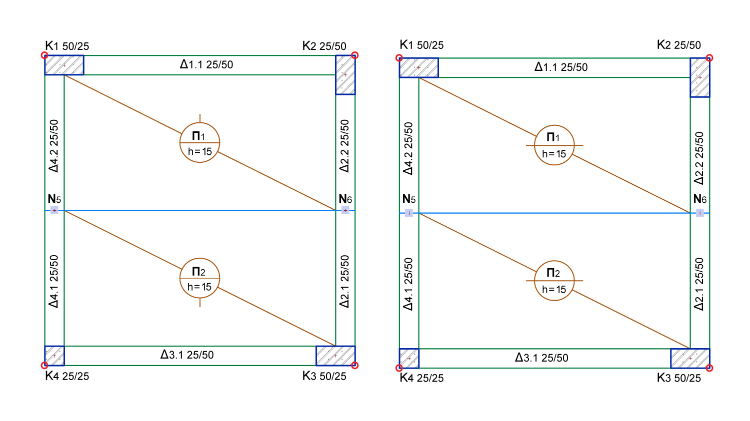 Μετά την «Προσαρμογή δοκών» (εντολή των “Παραγωγών”) οι πλάκες για τις οποίες έχετε θέσει «Σκάλα=Ναι» συνδέονται ως αμφιέρειστες στις μικρές πλευρές.