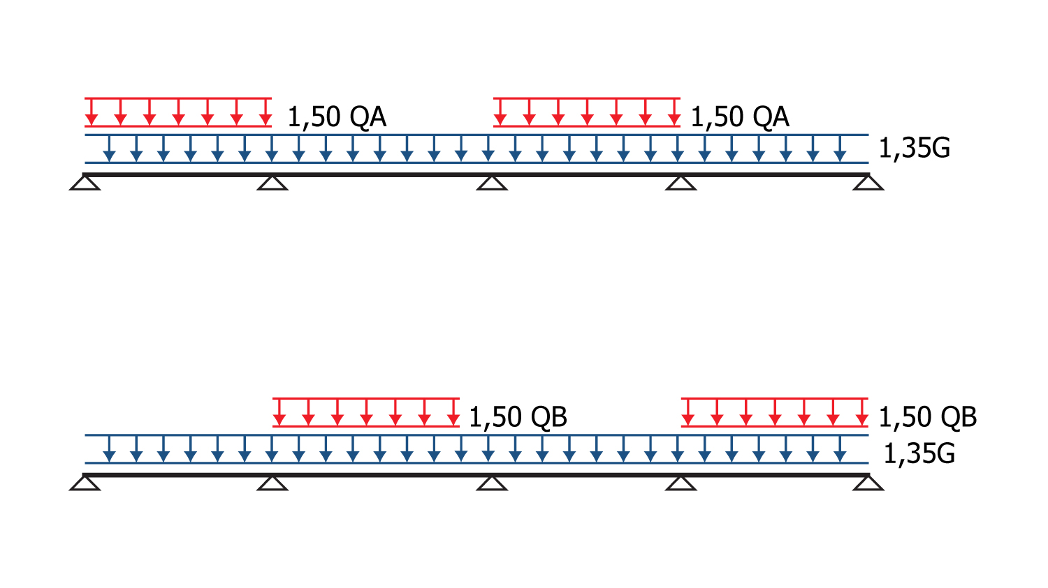 Οι φορτίσεις QΑ, QΒ παράγονται από την εναλλάξ φόρτιση ανοιγμάτων με το μεταβλητό φορτίο σχεδιασμού βάσει της EC2-1-1 §5.1.3(1)Α(a) ή EC3-1-1 παράρτ. ΑΒ.2(1)Β(α), ώστε να προκύψει η κρίσιμη εντατική κατάσταση για το άνοιγμα (θετικές ροπές) της δοκού.