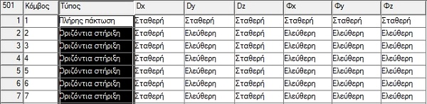 Μαζική αλλαγή του τύπου των στηρίξεων γίνεται με χρήση του πλήκτρου [F2], στον πίνακα 501 «Δυνατότητες μετατόπισης»