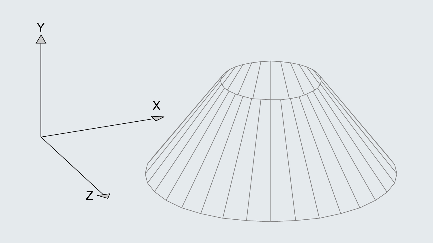Έστω ότι θέλουμε να κατασκευάσουμε έναν ορθό κόλουρο κώνο με κάτω βάση διαμέτρου 5 μέτρων, άνω βάση διαμέτρου 2 μέτρων και ύψος 4 μέτρα.