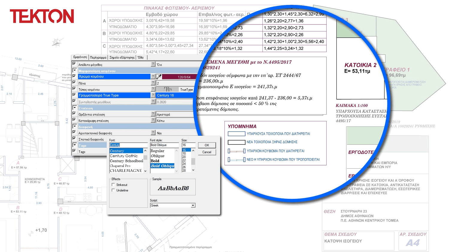 Λαμβάνοντας υπόψη την εξέλιξη του AutoCAD και την απαίτηση από τις ΥΔΟΜ (e-πολεοδομία) για καταβολή των μελετών προς αδειοδότηση σε μορφή dxf στη νέα έκδοση Tekton20 αναδιαρθρώθηκε εκτενώς το module CAD Organizer.