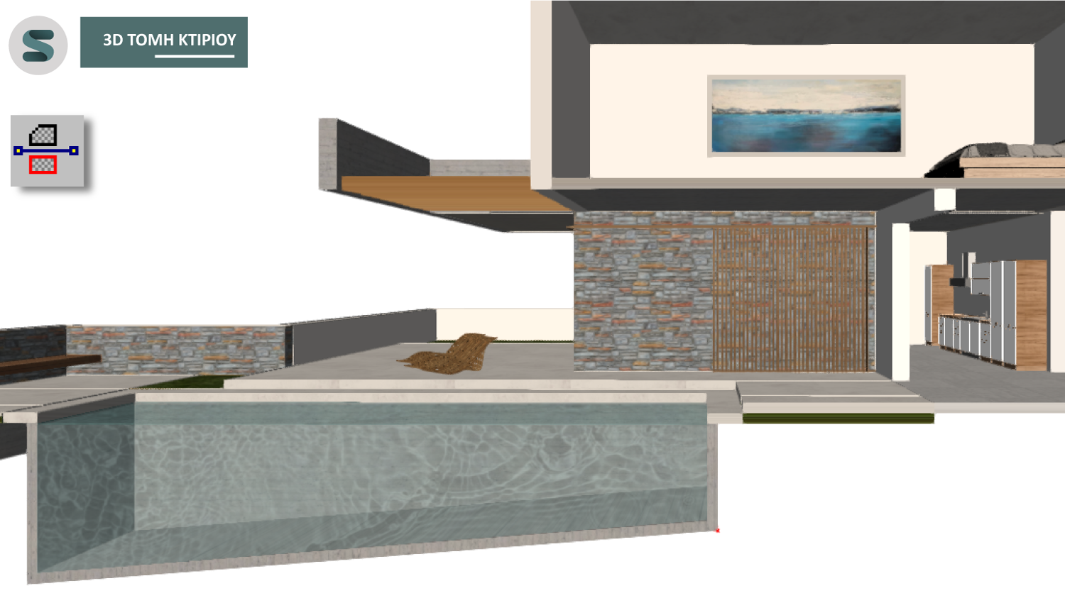 3D Τομή κτιρίου - +Χ προοπτική προβολή