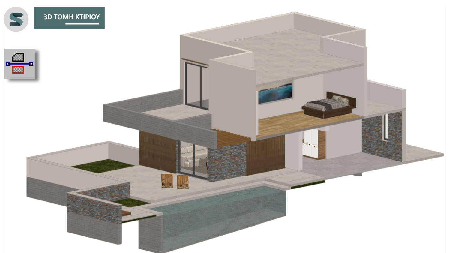 Αλλαγές που γίνονται στο 3D περιβάλλον μεταφέρονται αυτόματα στο περιβάλλον της κάτοψης και αντίστροφα.