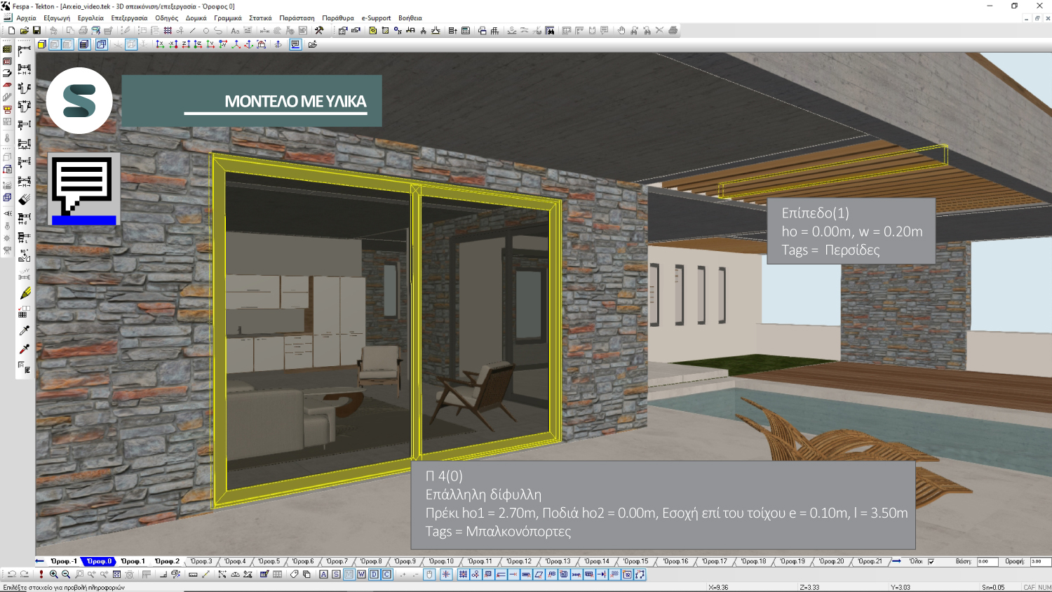 Το μοντέλο απεικονίζεται με υλικά ή χωρίς, σε αξονομετρική ή προοπτική προβολή.