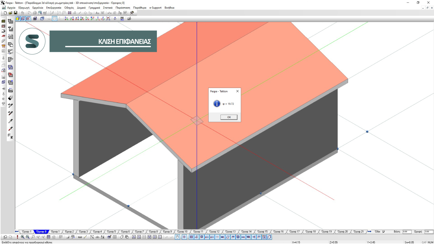 Η κλίση επιφανειών ως προς το οριζόντιο επίπεδο υπολογίζεται αυτόματα από το πρόγραμμα. Αρκεί να δείξετε την επιφάνεια της οποίας επιθυμείτε να μάθετε την κλίση.