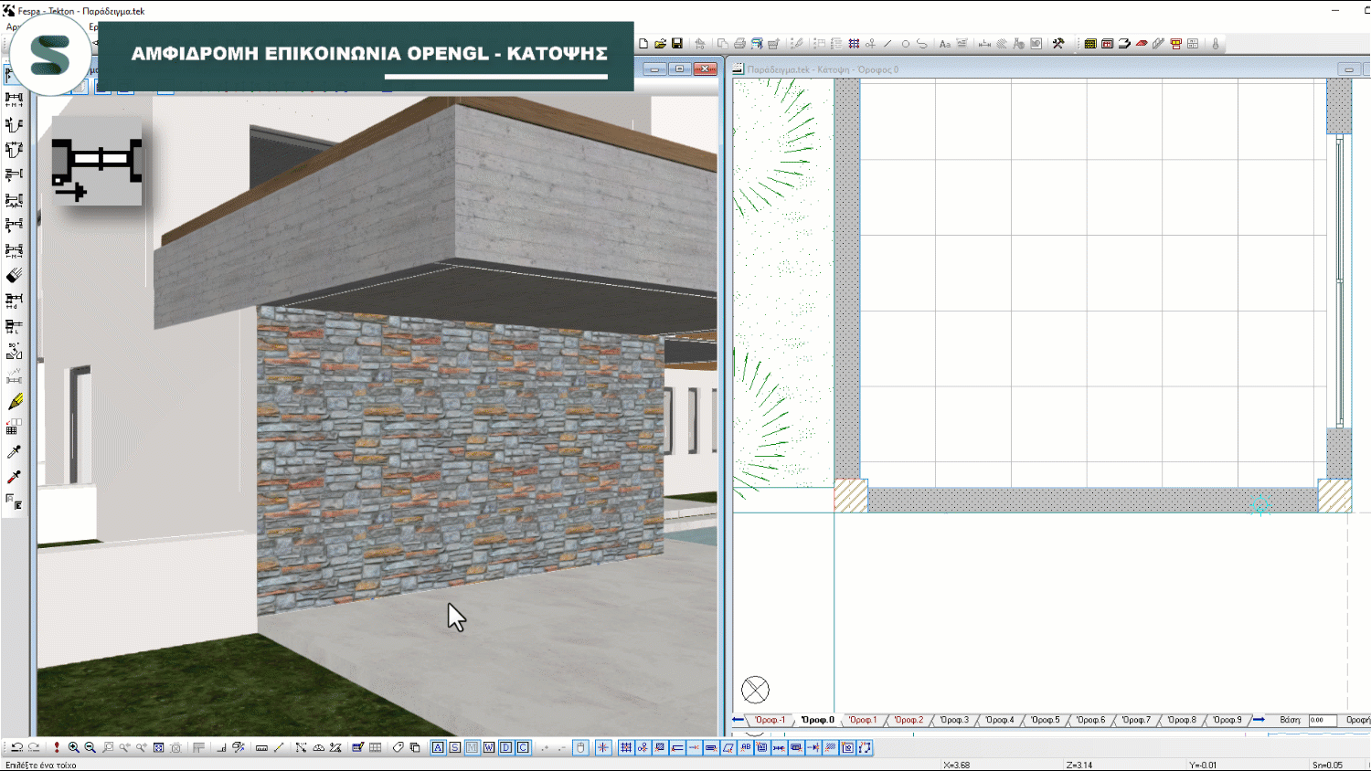 Νέο ενεργό 3D περιβάλλον (OpenGL) - BIM - Δυνατότητα σχεδίασης & τροποποίησης απευθείας στο χώρο