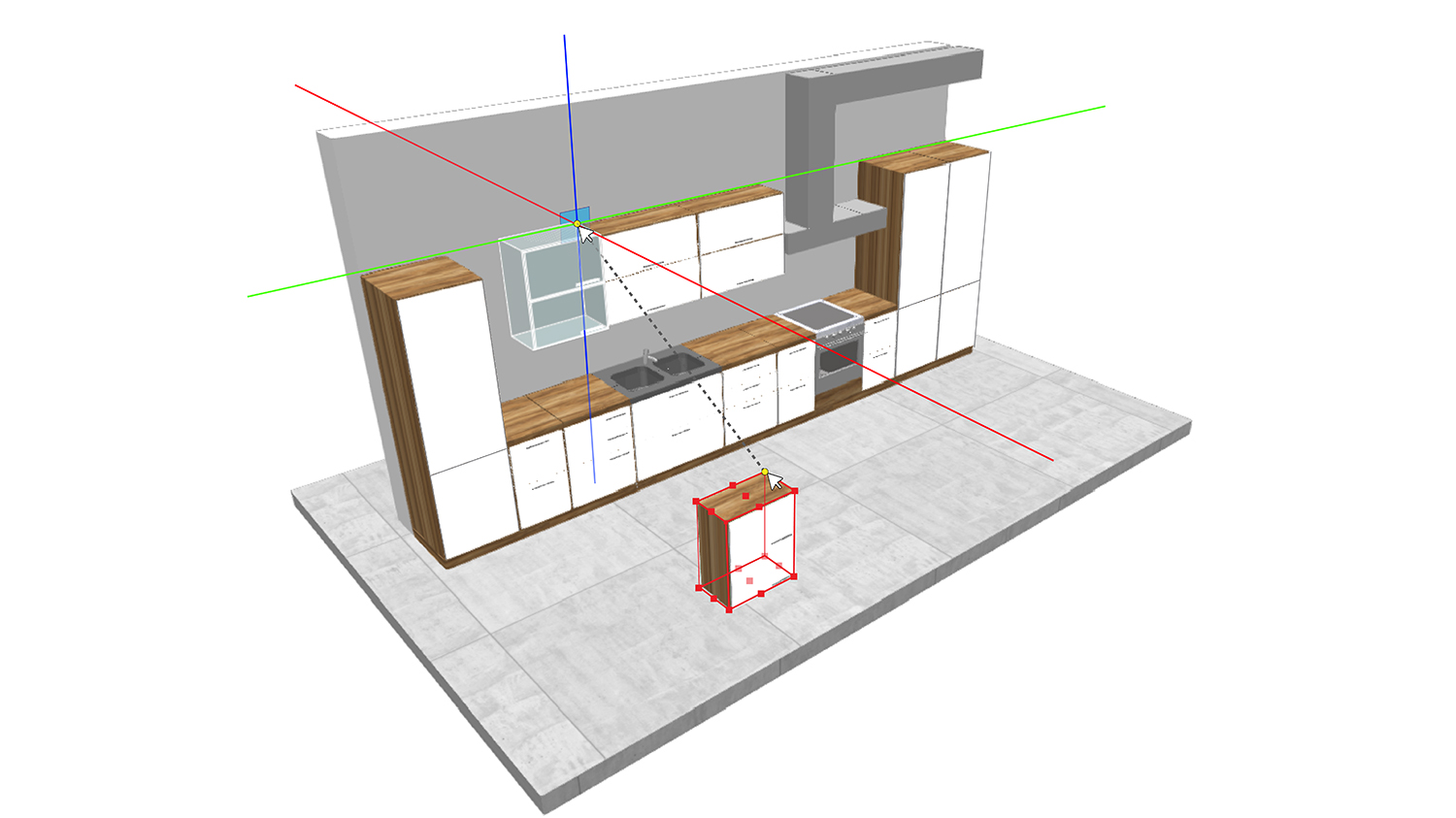 Με αυτό τον τρόπο αρκεί να ακουμπήσετε ένα ντουλάπι κουζίνας πάνω στον τοίχο στον οποίο θέλετε να το τοποθετήσετε και έχετε ορίσει την θέση του στον χώρο (ΧΖΥ).